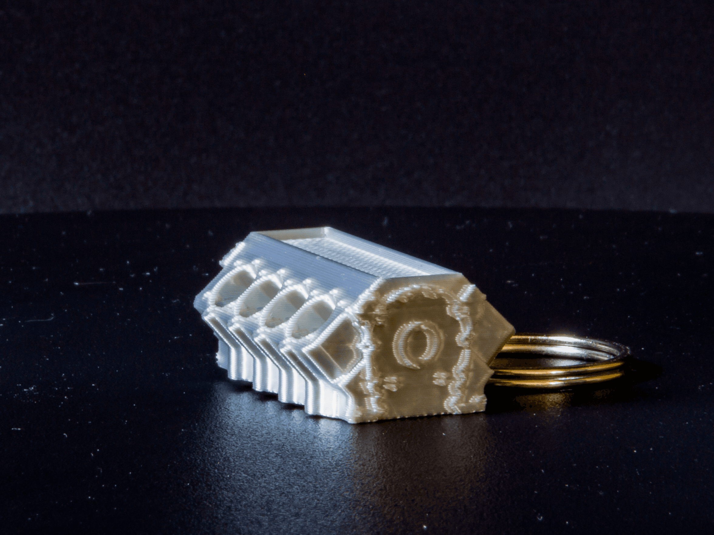 Двигатель V8 серебряный 3D брелок