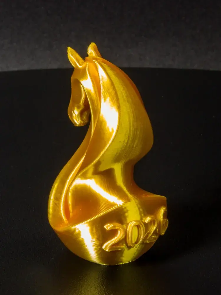 Ассортимент готовых 3D-моделей можно посмотреть здесь, в нашем магазине 3d-opt Shop, в разных вариантах: материала, цвета, размера. Под заказ - по договорённости. Золотая статуэтка «Лошадь» — символ 2026 года, декоративная фигурка для интерьера и подарка Украсьте интерьер символом наступающего 2026 года — статуэткой в виде лошади, выполненной в благородном золотистом тоне. Фигура сочетает в себе классическую элегантность и современную лаконичность: плавные линии, аккуратные детали, устойчивая подставка. Эта декоративная фигурка станет центральным элементом праздничной композиции, украсит каминную полку, столик в гостиной или кабинет, а также будет памятным и стильным подарком для близких и коллег. Высота 5 см